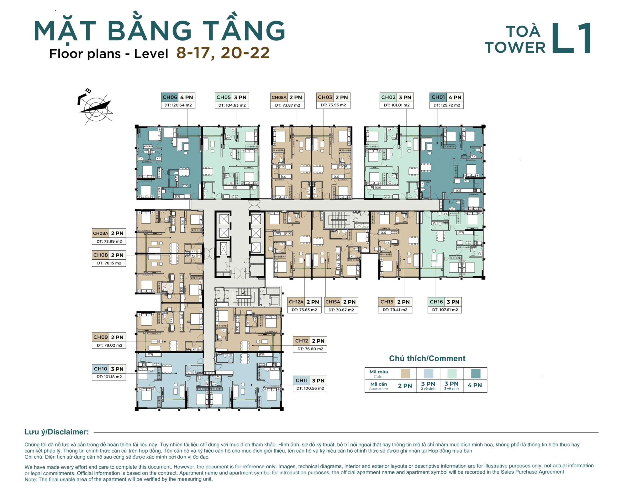 • Diện tích từ 70,6 – 129.38m2.