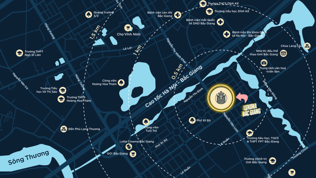- Vị trí đắc địa của Luxora Bắc Giang đảm bảo tiềm năng sinh lời cao, là lựa chọn lý tưởng cho cả cư dân và nhà đầu tư.