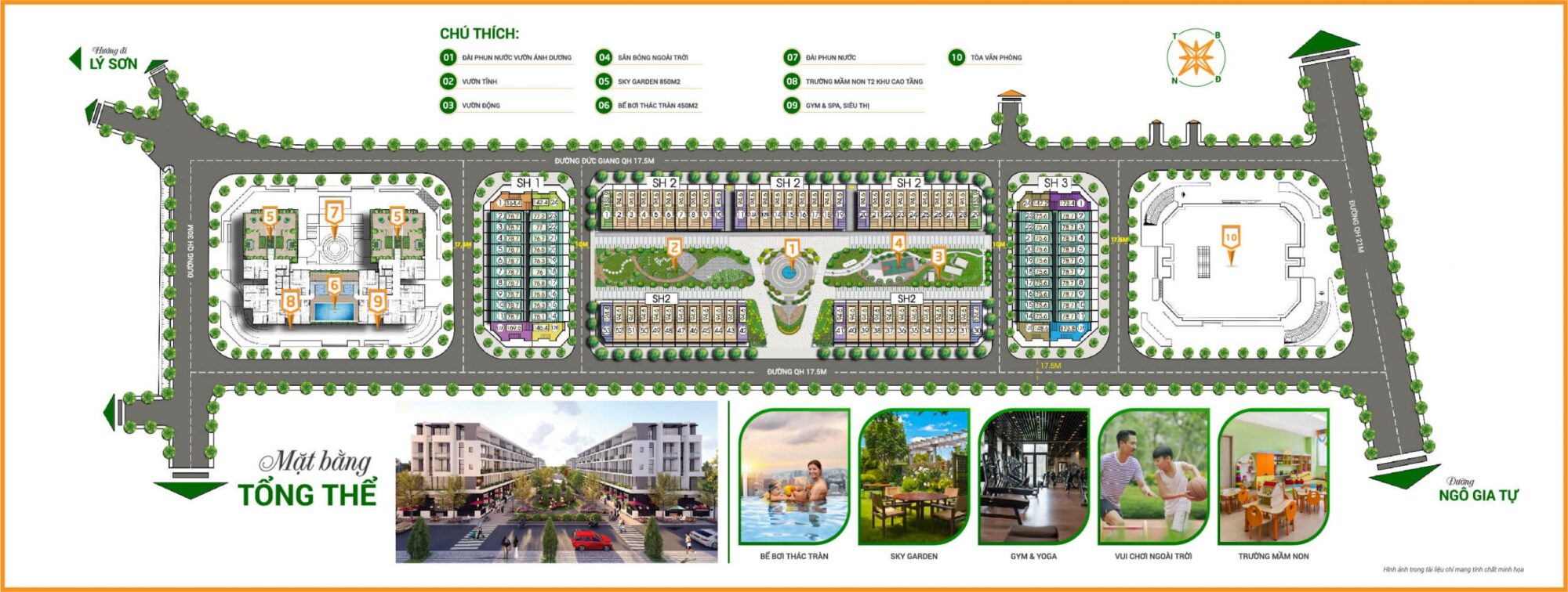 - Shophouse Bình Minh Garden 101 lô shophouse diện tích từ 79 – 95m2 với 5 tầng cao cho người dân sinh sống