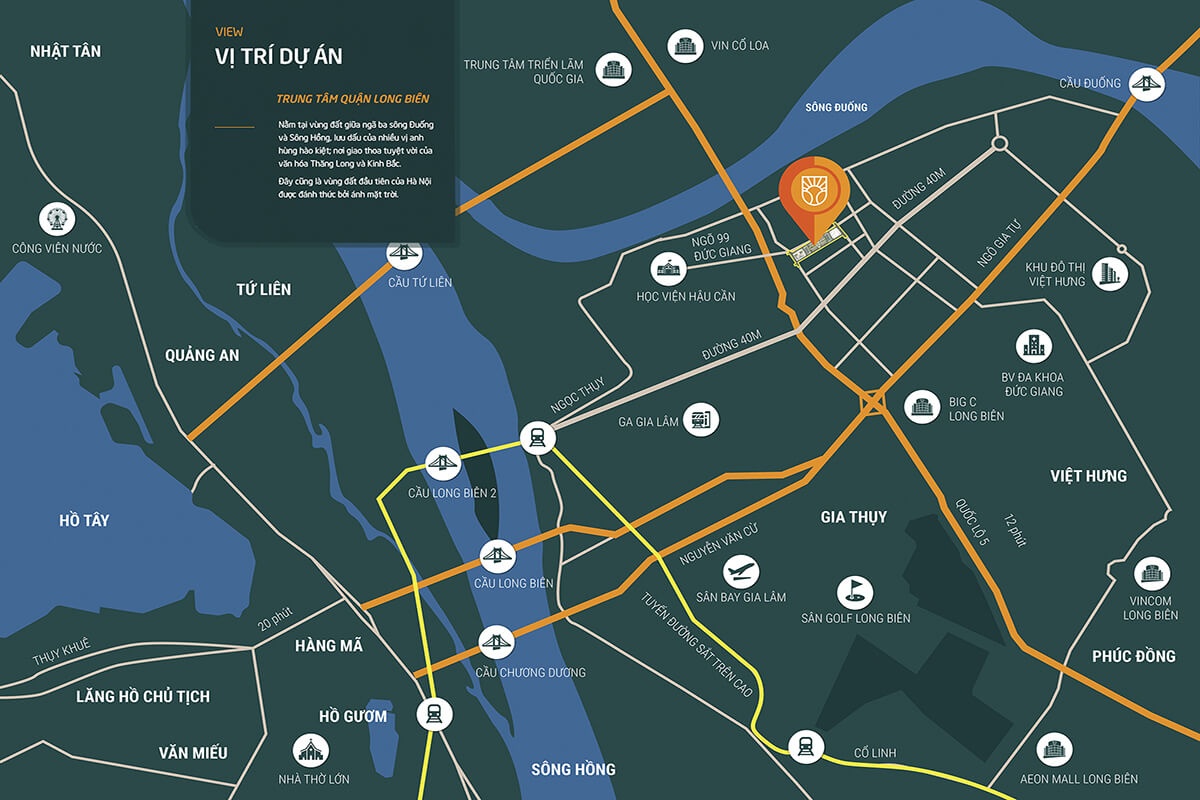 - Nằm tại vùng đất giữa ngã ba sông Đuống và sông Hồng, nơi địa linh nhân kiệt, Long Biên được nhắc đến như đất rồng thiêng hội tụ với tiềm năng 2025 phát triển thành đô thị vệ tinh.