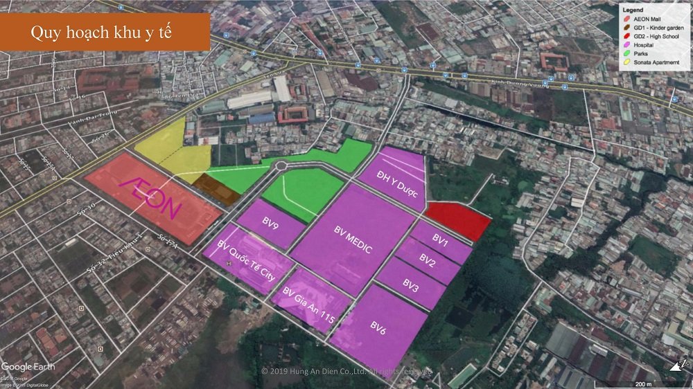 - Dự án AIO City nằm trong khu 37,5 ha Khu Y Tế Kỹ Thuật Cao với tiêu chuẩn 6 bệnh viện và Trung tâm thương mại AEON Bình Tân