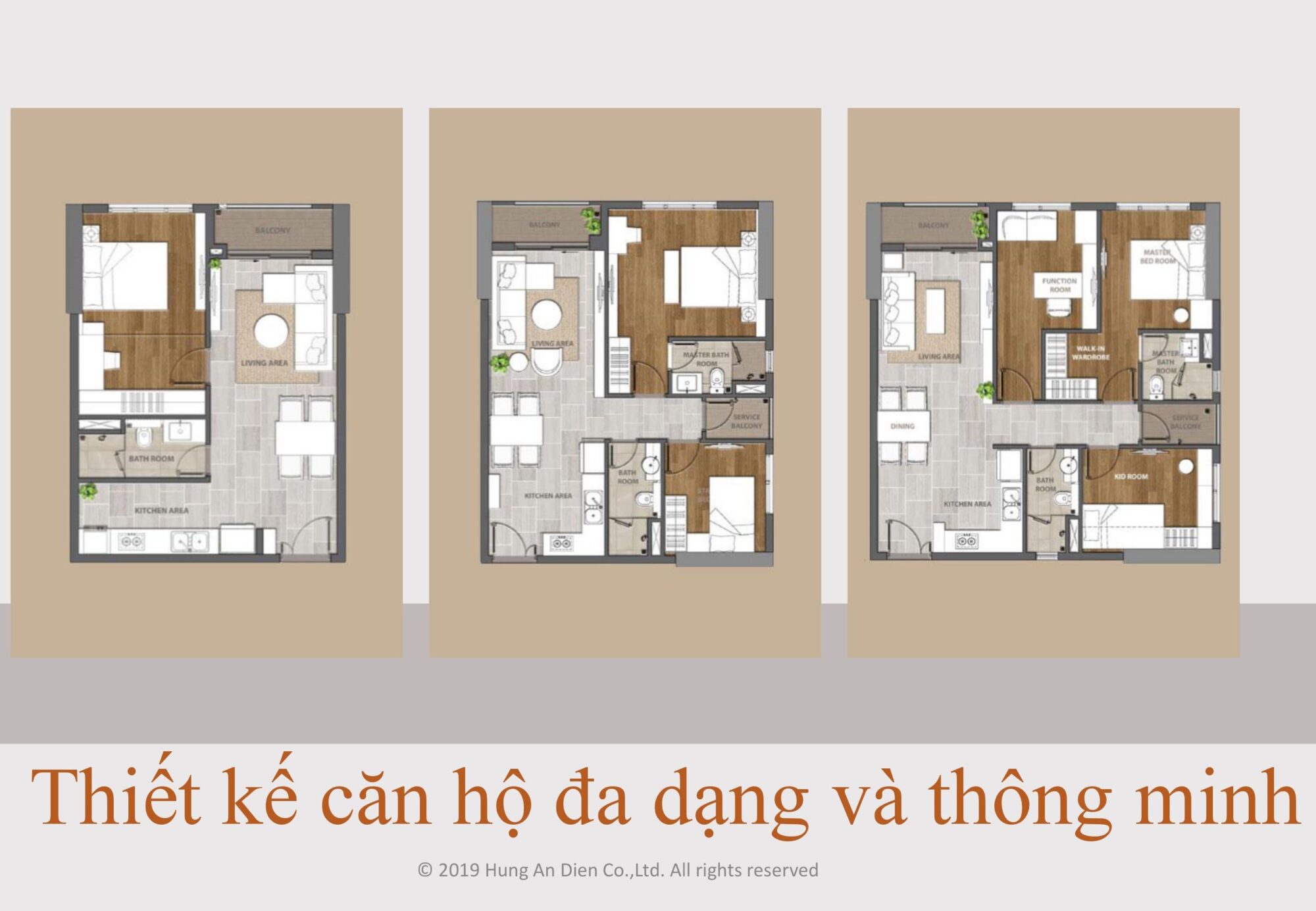 - Tầng 3 đến tầng 25 là căn hộ : Diện tích căn hộ từ 45 m2 đến 86 m2