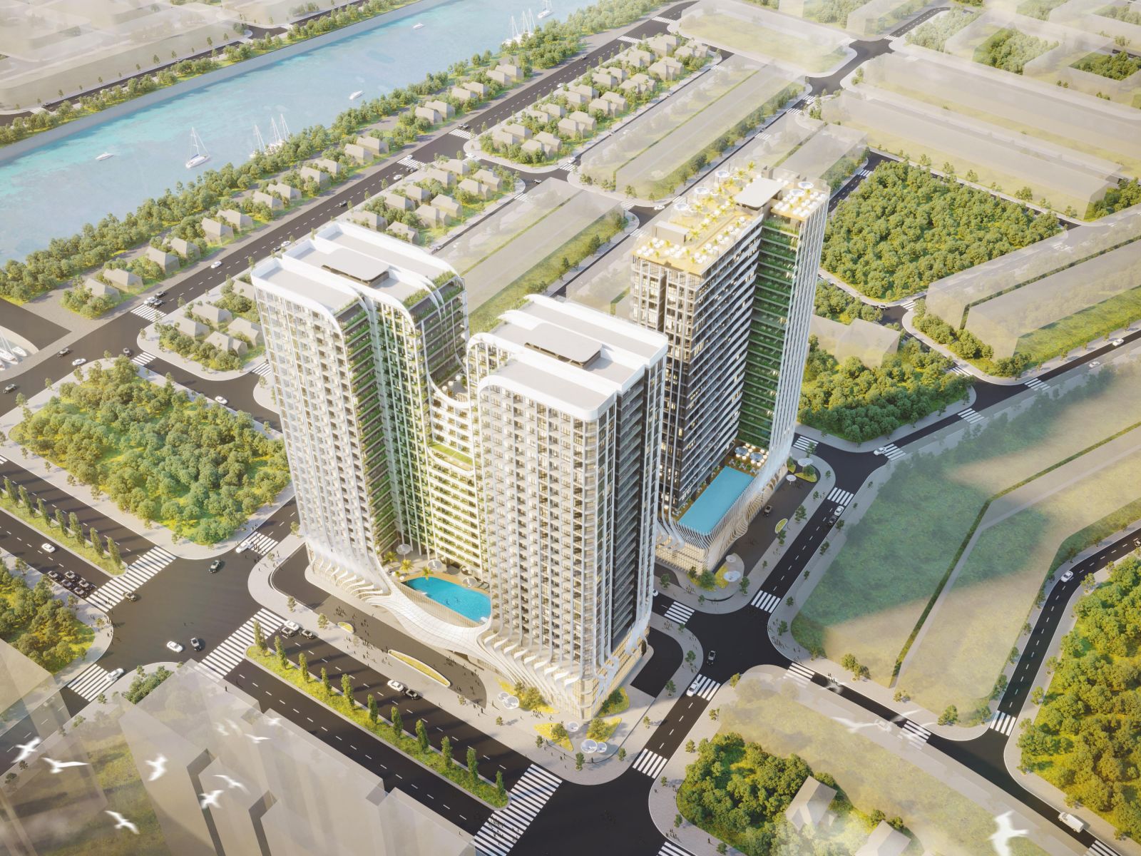 Với 2 tháp căn hộ đứng hiên ngang bên dòng Cổ Cò và Biển Đông.Thiết kế hiện đại và thông minh với khả năng lấy sáng và gió tự nhiên. Với vị trí gần biển và được che chở bở núi Ngũ Hành Sơn thì đây chính là nơi hội tụ vượng khí cho một tương lại rực rỡ và thuận lợi về sau.