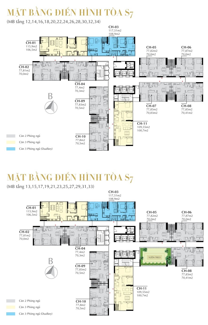 • Penhouse (biệt thự trên không) diện tích từ 107 – 151 m2 trở lên, có mảng sân vườn và công viên xanh (được chủ đầu tư bàn giao hoàn thiện)