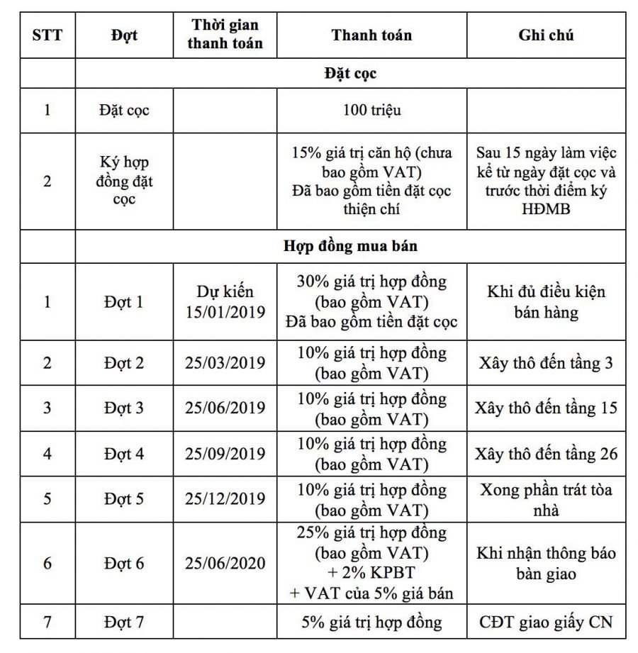 Thanh toán theo tiến độ Sunshine City Sài Gòn