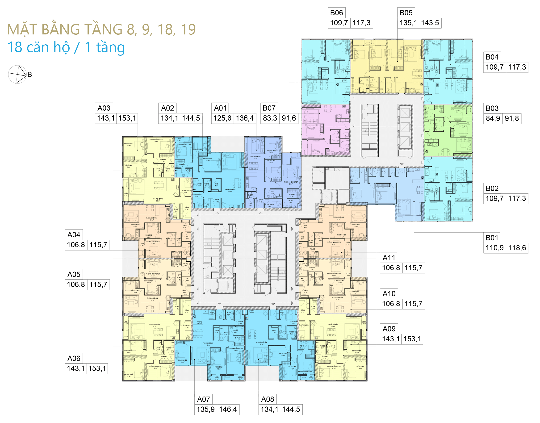 - Diện tích căn hộ: đa dạng từ 62m2 đến 143m2