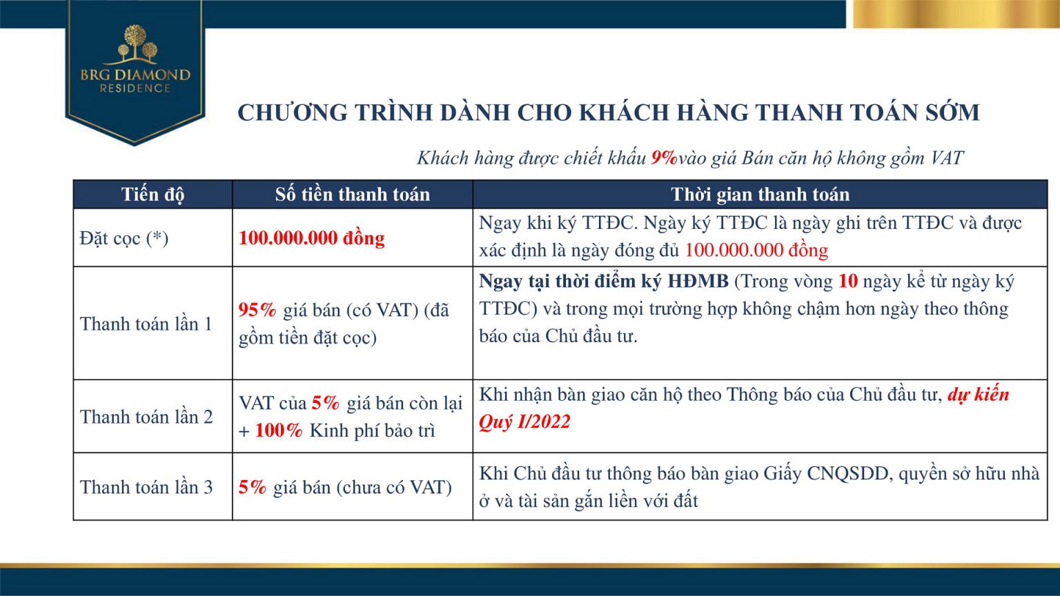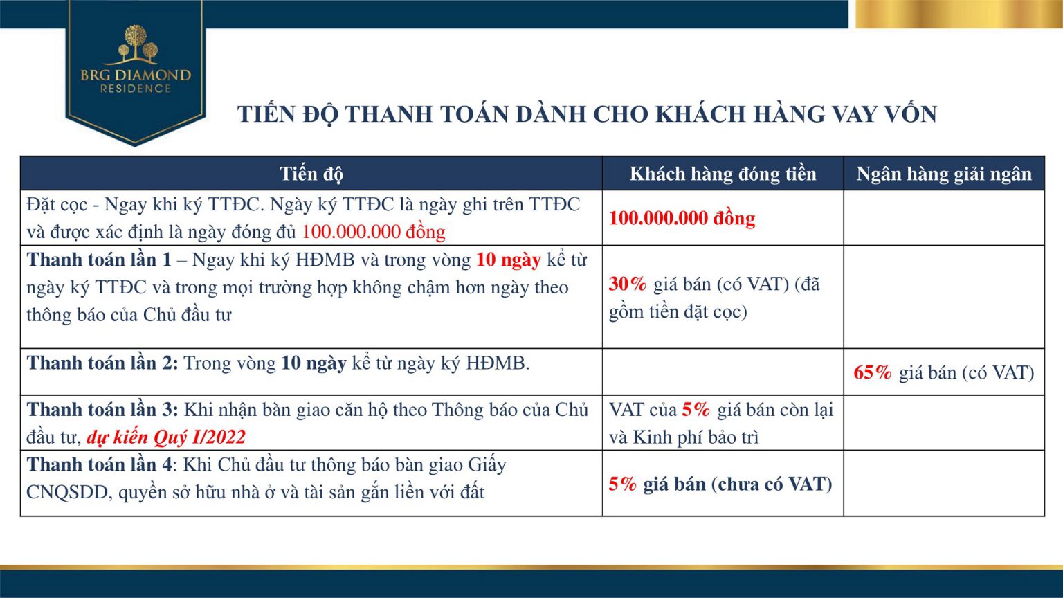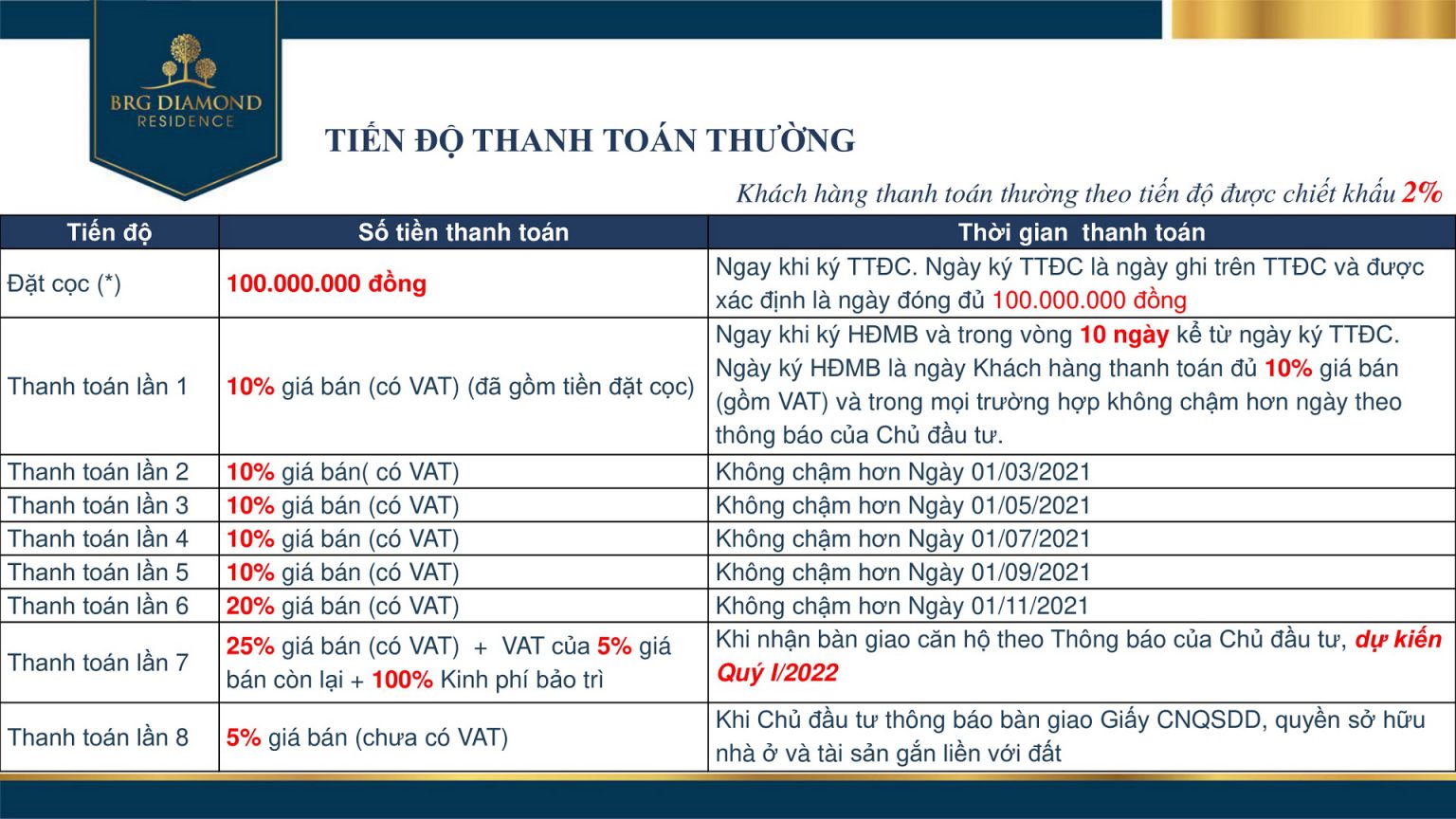 Thanh toán theo tiến độ Chung cư BRG Diamond Residence