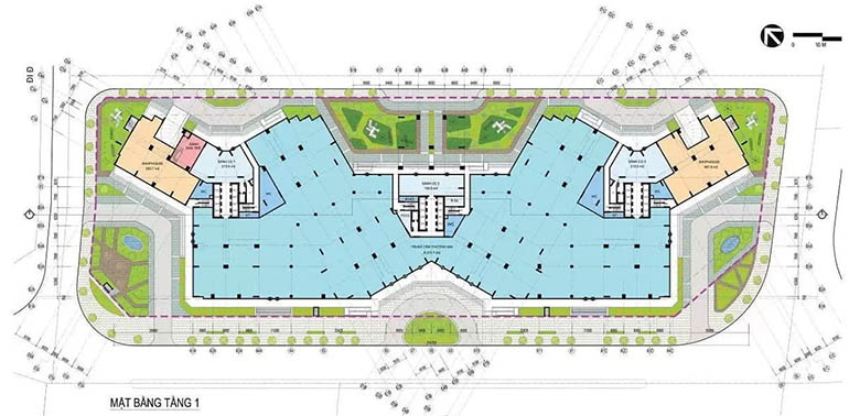 Mặt bằng tầng 1 của dự án Hoàng Huy Commerce