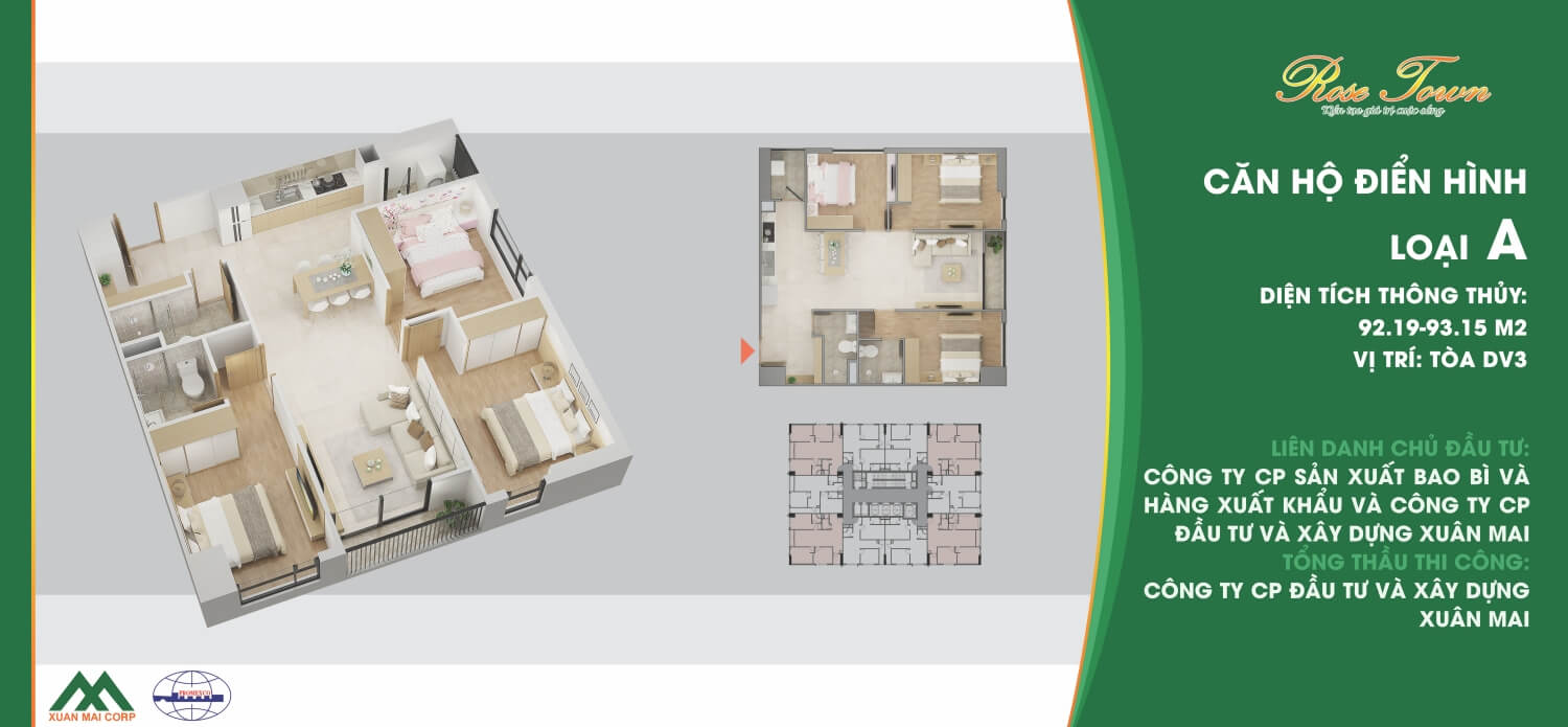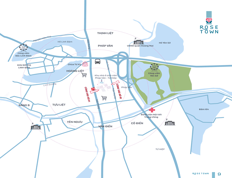 - Quy mô: Rose Town là tổ hợp 5 chung cư cao 27 tầng, 1 toà văn phòng cho thuê cao 25 tầng và 48 căn liền kề, biệt thự thấp tầng. Trong đó:- 3 Tầng hầm: Khu vực đỗ xe ô tô và xe máy