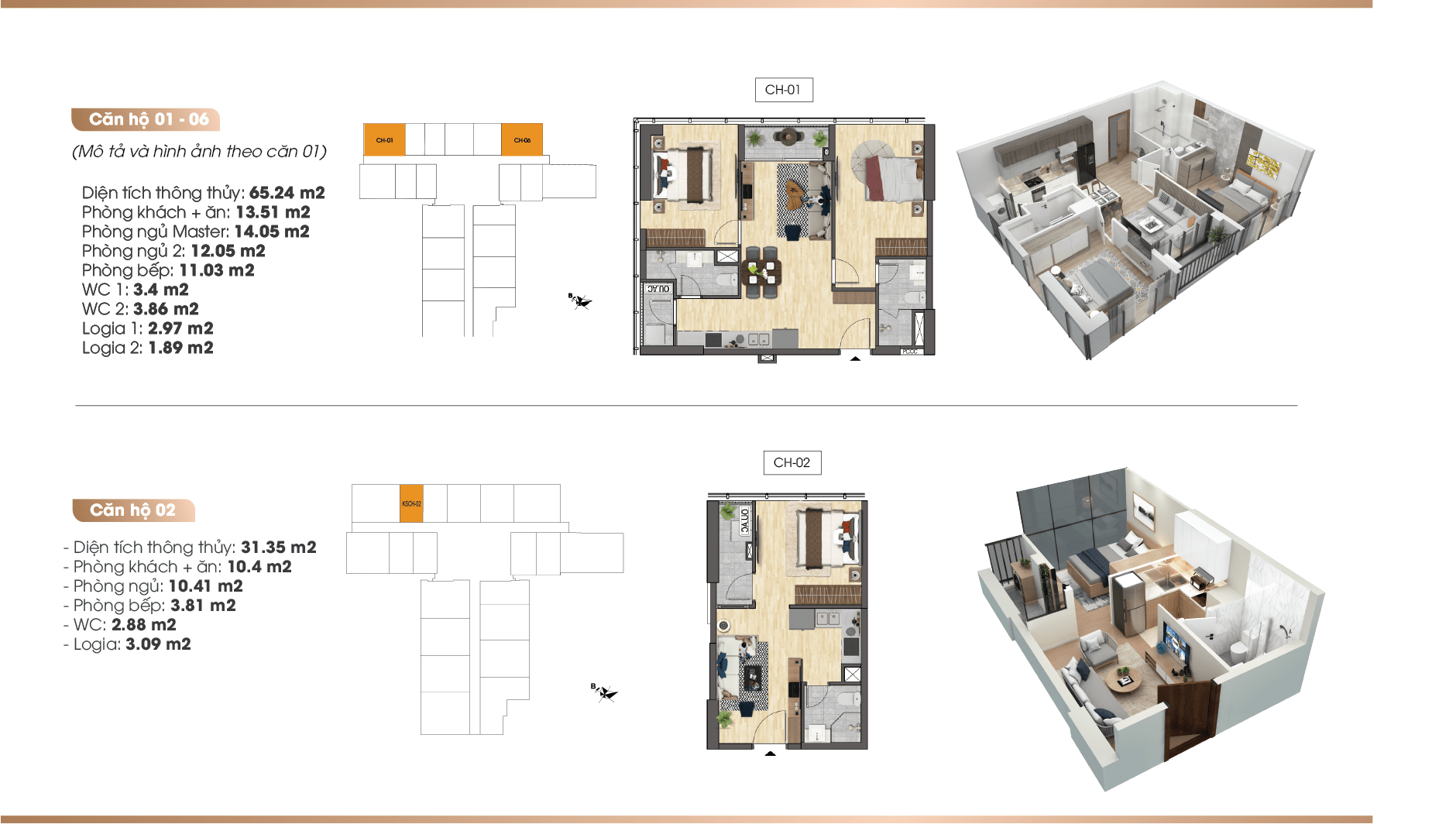 + Diện tích căn hộ: 31,35 – 92,14 m2