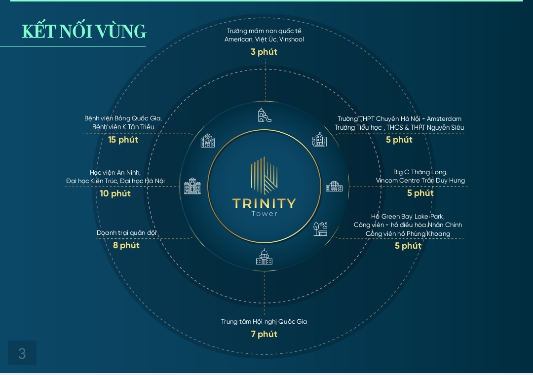Dự án Trinity Tower có vị trí đắc địa tại Số 145, Đường Hồ Mễ Trì, phường Nhân Chính, q. Thanh Xuân, tp Hà Nội. Dự án nằm liền kề Vinhomes Green Bay, nơi có hệ thống giao thông rất phát triển. Dự án nắm trong tay hạ tầng giao thông đồng bộ, kết nối với nhiều tuyến đường lớn như đại lộ Thăng Long, Lương Thế Vinh, Khuất Duy Tiến, Phạm Hùng, Trần Duy Hưng… Với hệ thống hạ tầng hoàn chỉnh, dễ dàng kết nối tới các tiện tích công cộng như: tuyến xe bus nhanh BRT, Trường học, bệnh viện, công viên, bến xe, sân vận động,… chỉ trong vài phút lái xe hoặc vài bước chân.