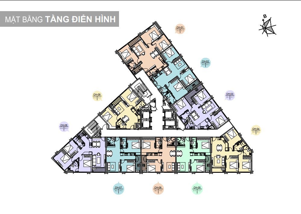 - Cơ cấu căn hộ từ 65.8m2 – 67m2 – 83m2 – 96m2