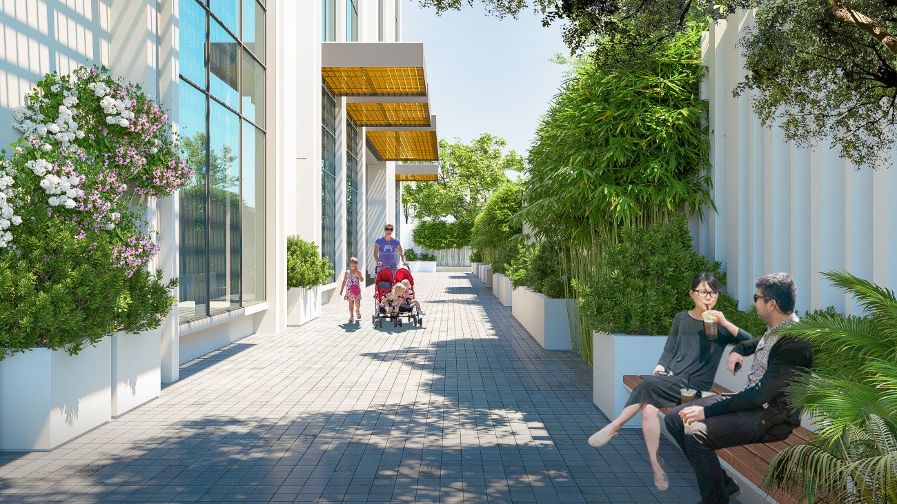 - Khuôn viên dạo bộ với nhiều hệ thống cây xanh mang lại không khí thoáng mát, trong lành cho cư dân