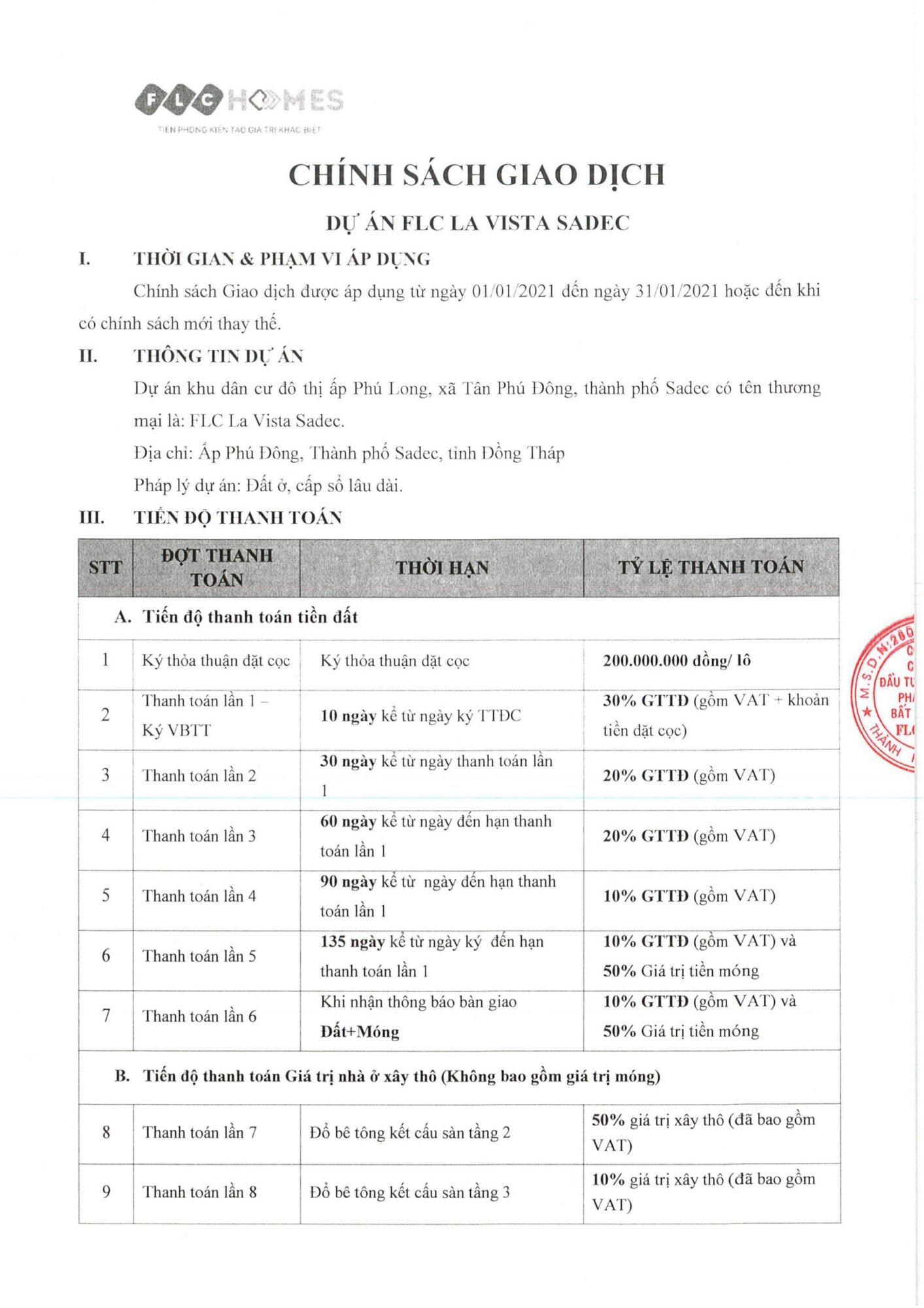 Chính sách bán hàng FLC La Vista Sa Đéc