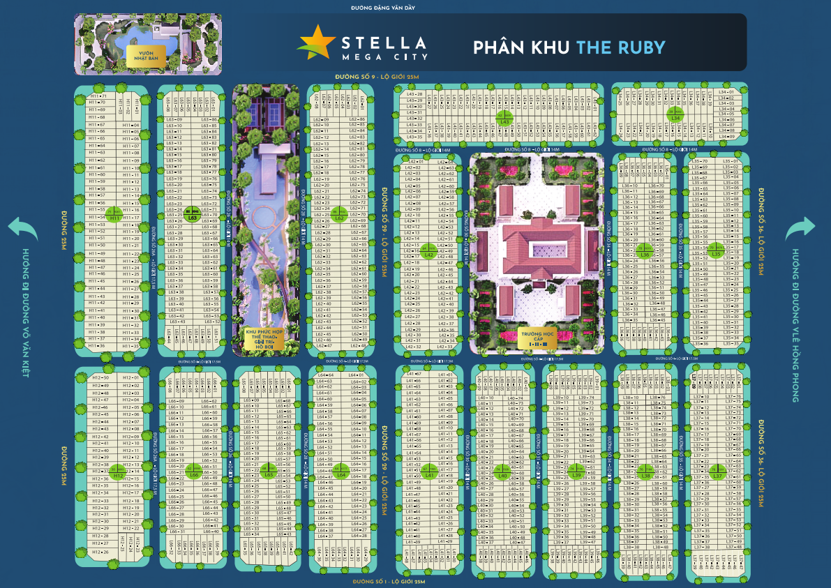 • Nằm xen kẽ giữa các khu dân cư là hệ thống vườn nhiệt đới tạo cảnh quan cũng, hồ bơi, công viên, minimart, gym… là nơi vui chơi thư giãn cho cư dân Stella Mega City