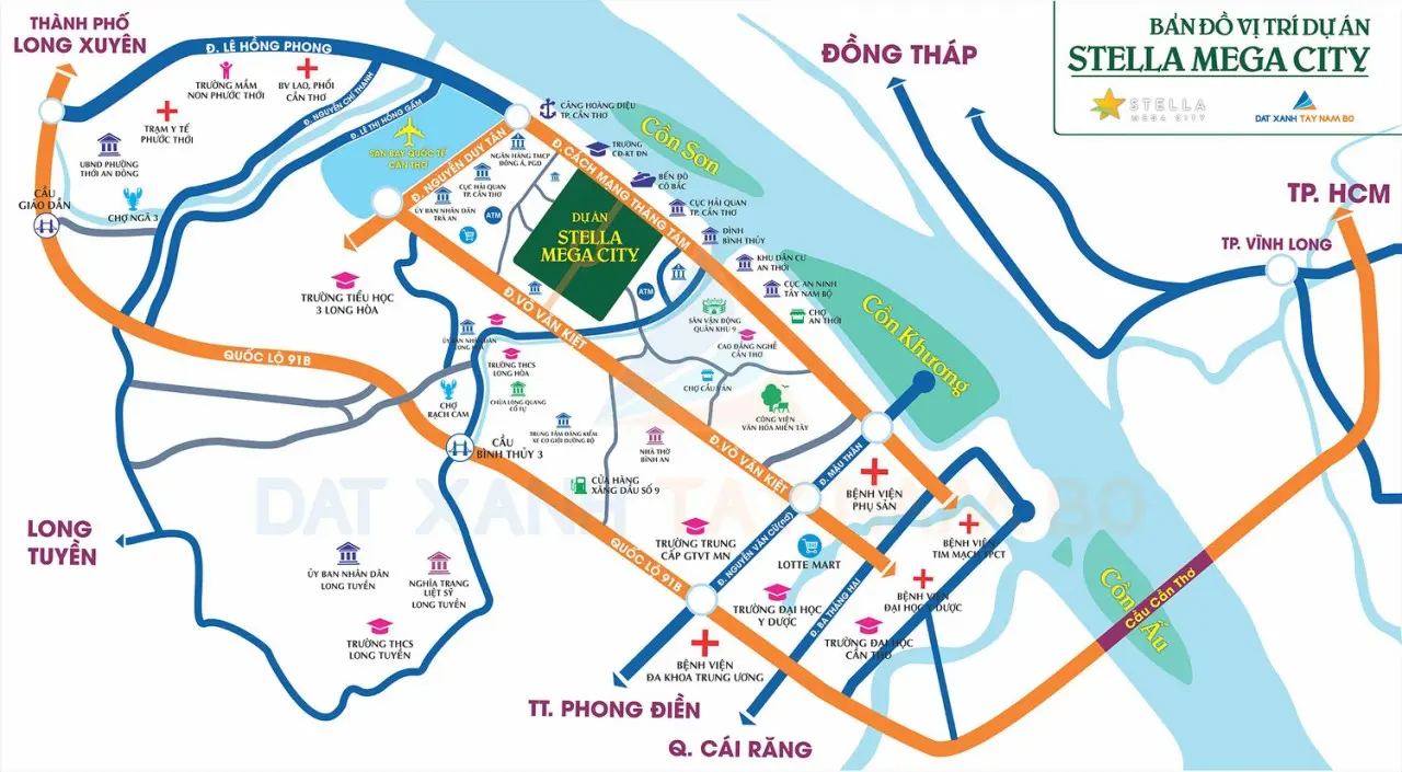Tiềm năng của thị trường bất động sản Cần Thơ nói chung và dự án KĐT Stella Mega City, Quận Bình Thủy nói riêng được đánh giá cao không chỉ nhờ vào vị trí trung tâm vùng Đồng bằng sông Cửu Long, mà còn nhờ vào tính chất kết nối thông suốt về hạ tầng giao thông với các địa phương trong vùng.