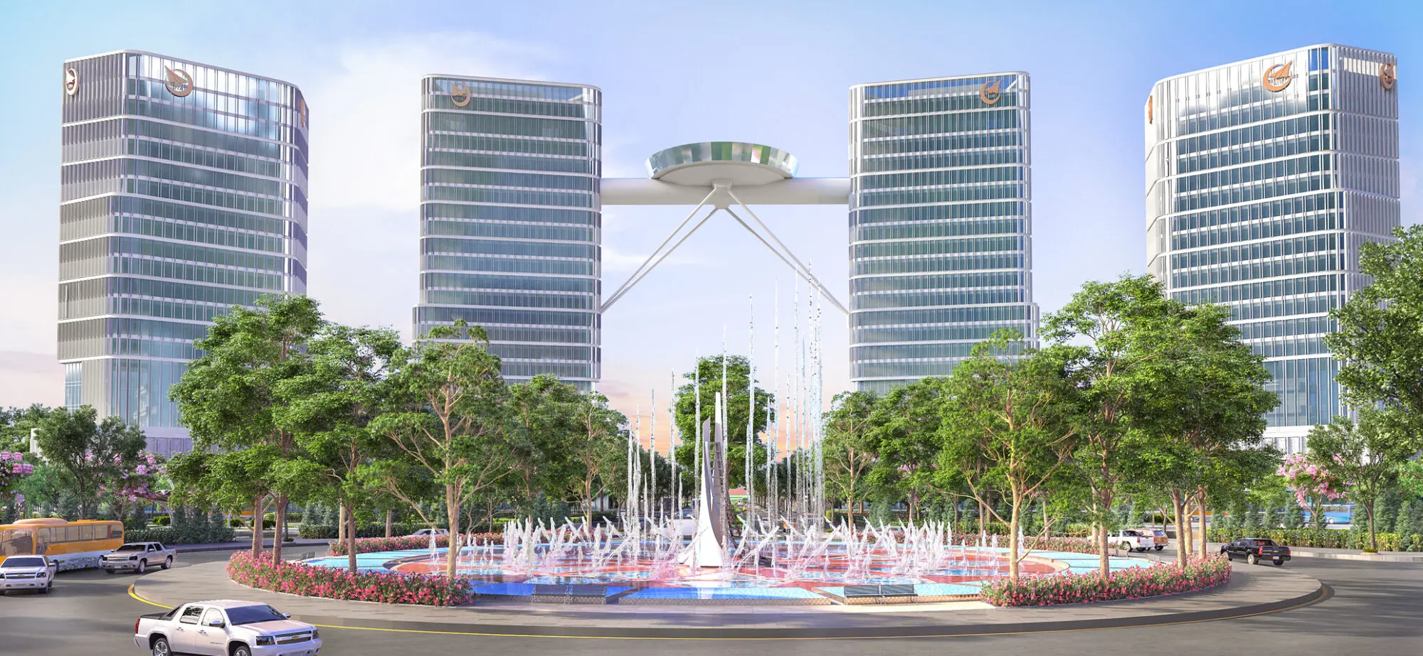 • Phía sau là 6 tòa tháp thương mại đa chức năng: Khách sạn 5 sao, nhà hàng trên cao, trung tâm thương mại, mua sắm, tòa nhà văn phòng…
