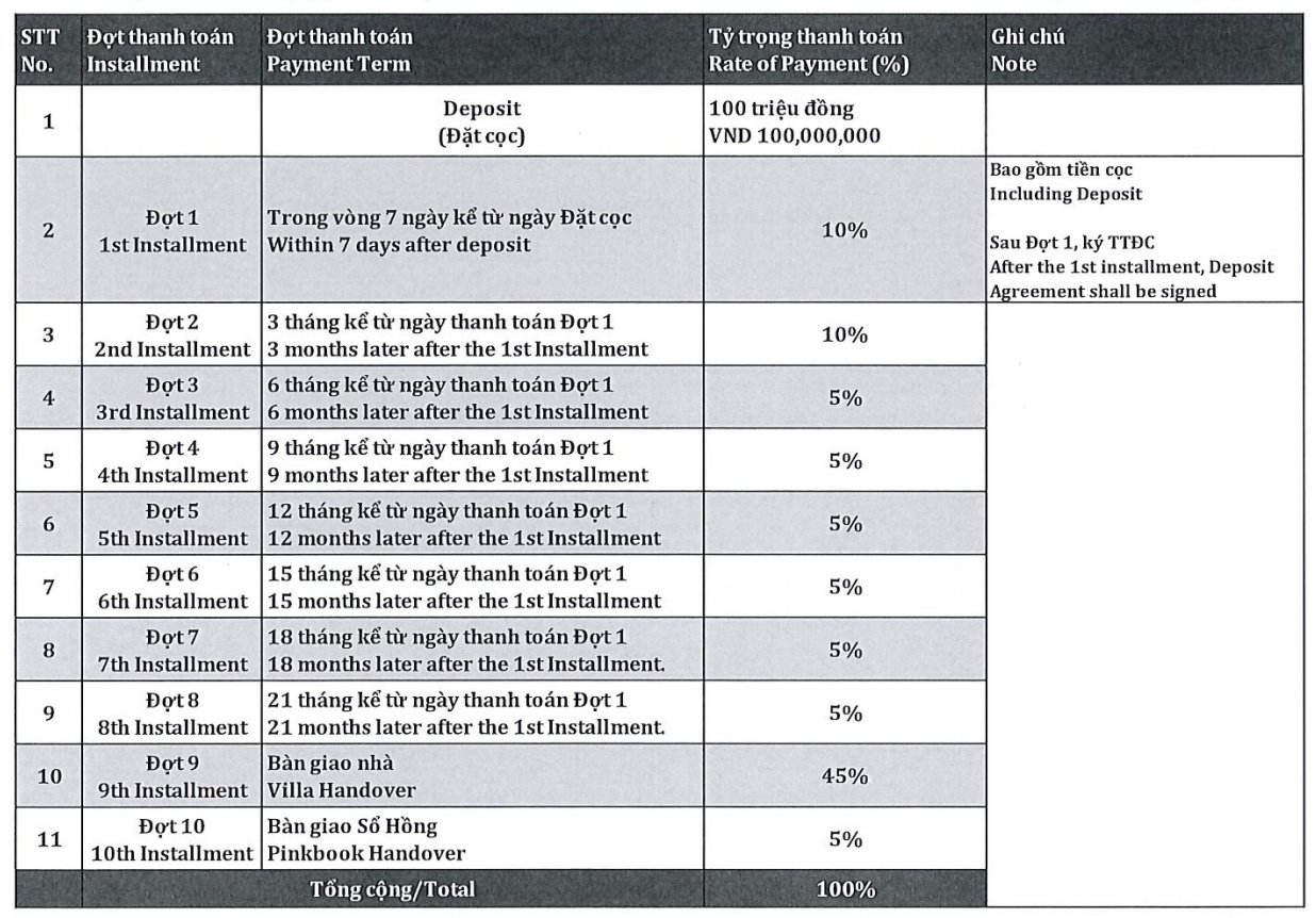 Thanh toán theo tiến độ SwanPark Nhơn Trạch