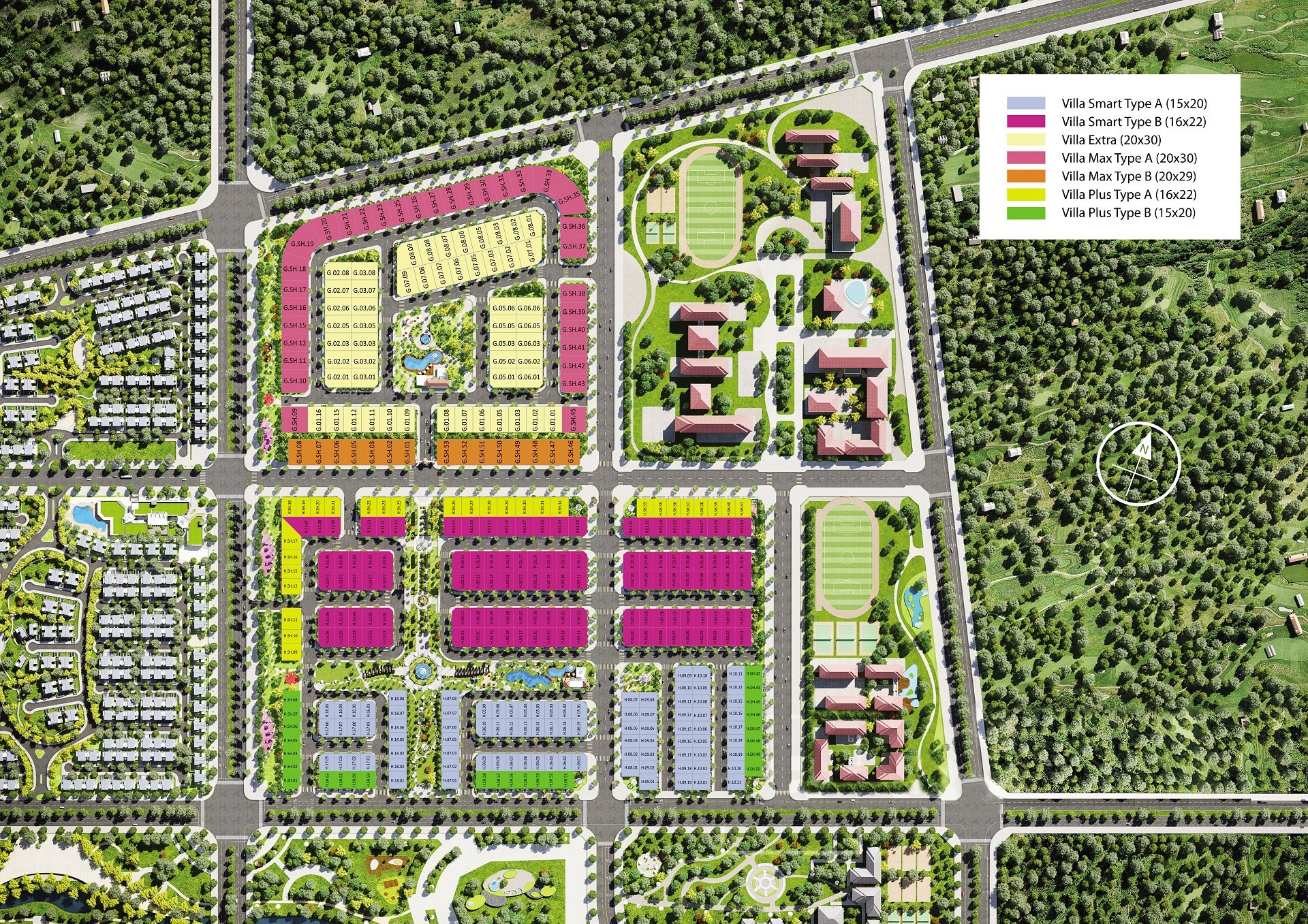 - Biệt thự cát tường: 30 căn diện tích 11,8m x 19,8m