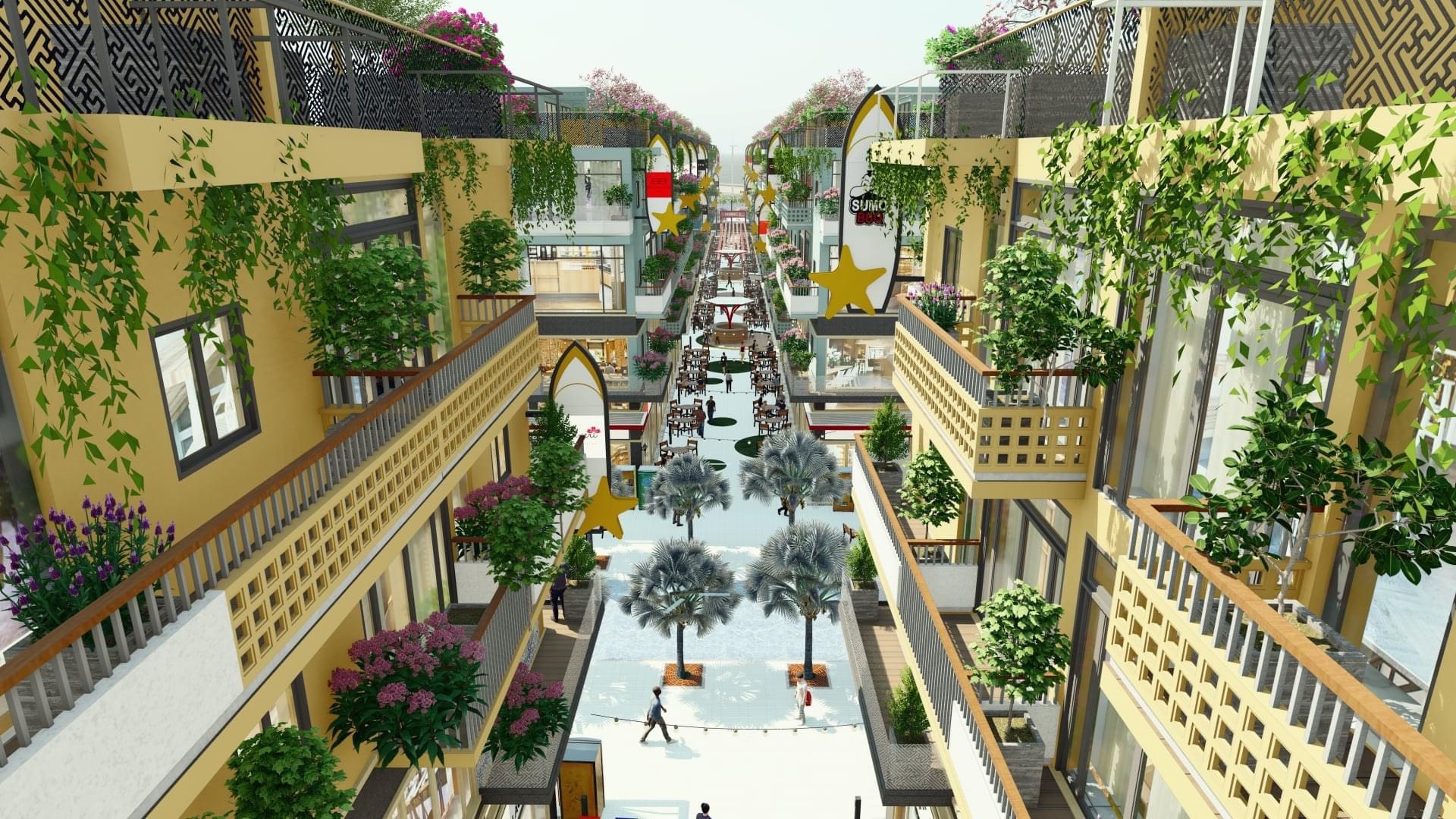 Khu phố thương mại, dịch vụ Shophouse: rộng 8,1 ha gồm 99 căn shophouse thương mại được thiết kế 4 lầu và 1 tầng thượng.