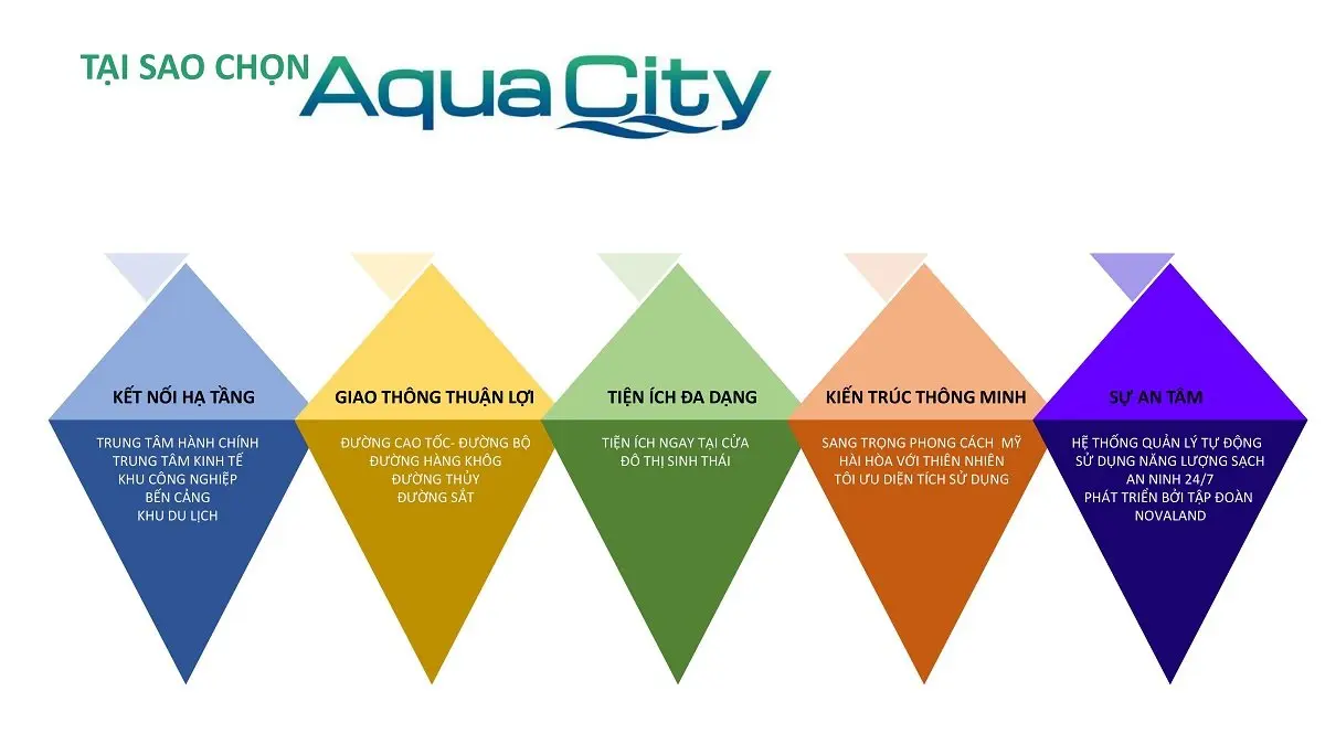 Với tiện ích đầy đủ và đa dạng như một thành phố nhỏ. Aqua City đem lại một cuộc sống an nhiên với sông nước và cây xanh trải dài quanh dự án.