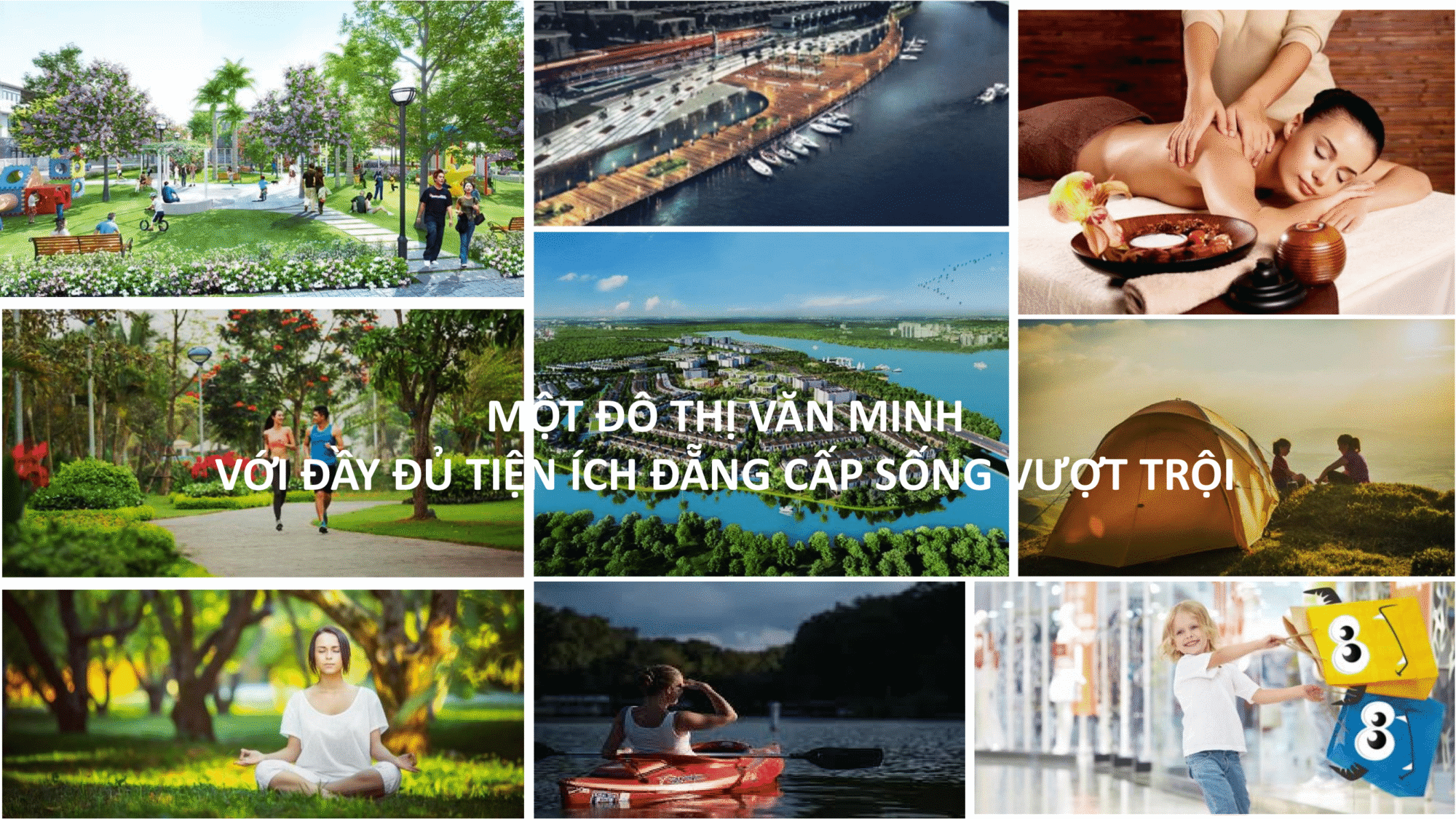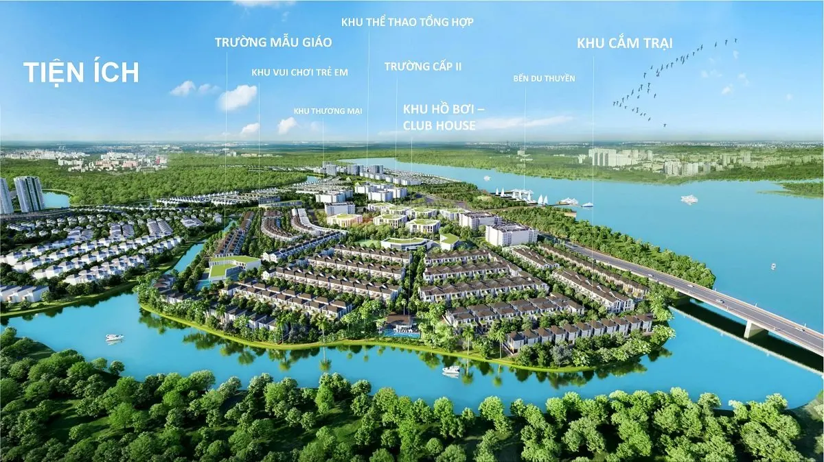 Tiện ích nội khu: trường học, khu thể thao, công viên ven sông, khu thương mại, bến du thuyền, khu cắm trại…