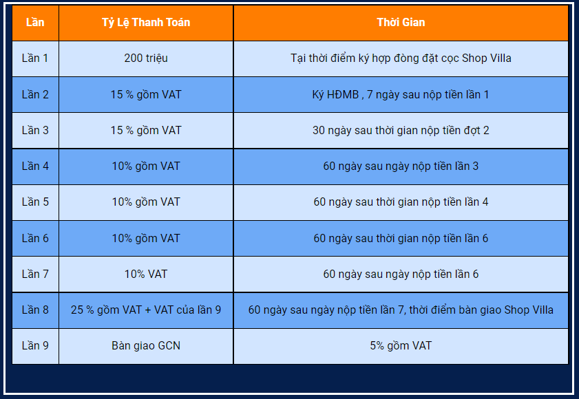 Thanh toán theo tiến độ Shophouse Fiesta Cam Ranh